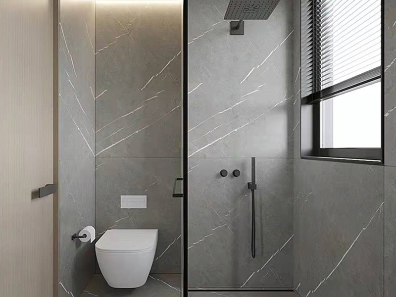 灰色大理石砖筑利落场,木色门柔化硬朗,黑色五金点睛。洗漱时,光影漫石纹;沐浴后,秩序托松弛。色彩以灰为底,糅合木棕、黑,借“冷石+暖木”,演绎现代原木卫浴的简洁质感。