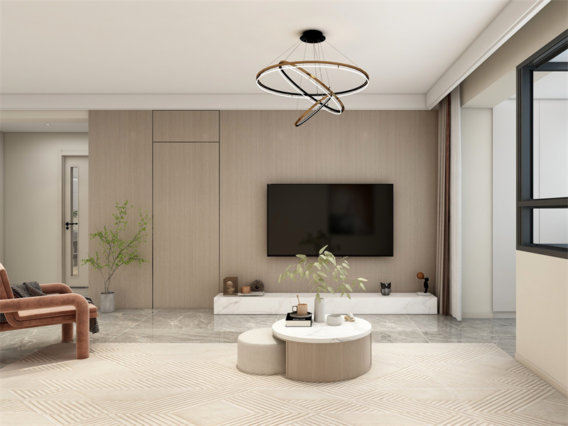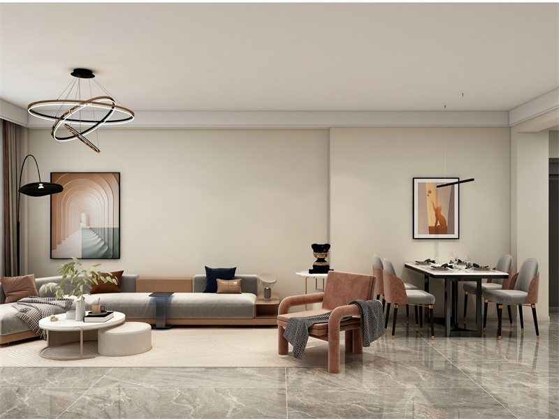 以米白、浅棕为主调,低饱和色系交融出柔和气场。开放式布局串联社交与用餐场景,悬浮茶几、简约餐桌呼应极简美学。晨起用餐、午后闲坐、晚间聚会,在流畅动线上,让交流自然发生,诠释现代极简的包容与松弛。