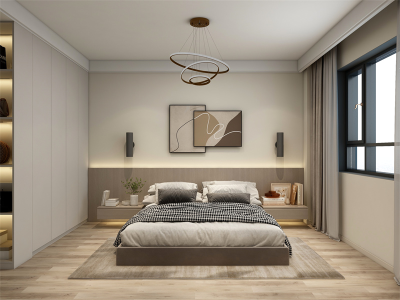奶白墙面、浅木地板铺陈静谧基底,悬浮床具、一体化衣柜简化视觉。睡前阅读、晨起整理,在去繁就简的布局里,回归“简而有致”的休憩日常,适配现代极简的舒缓节奏。